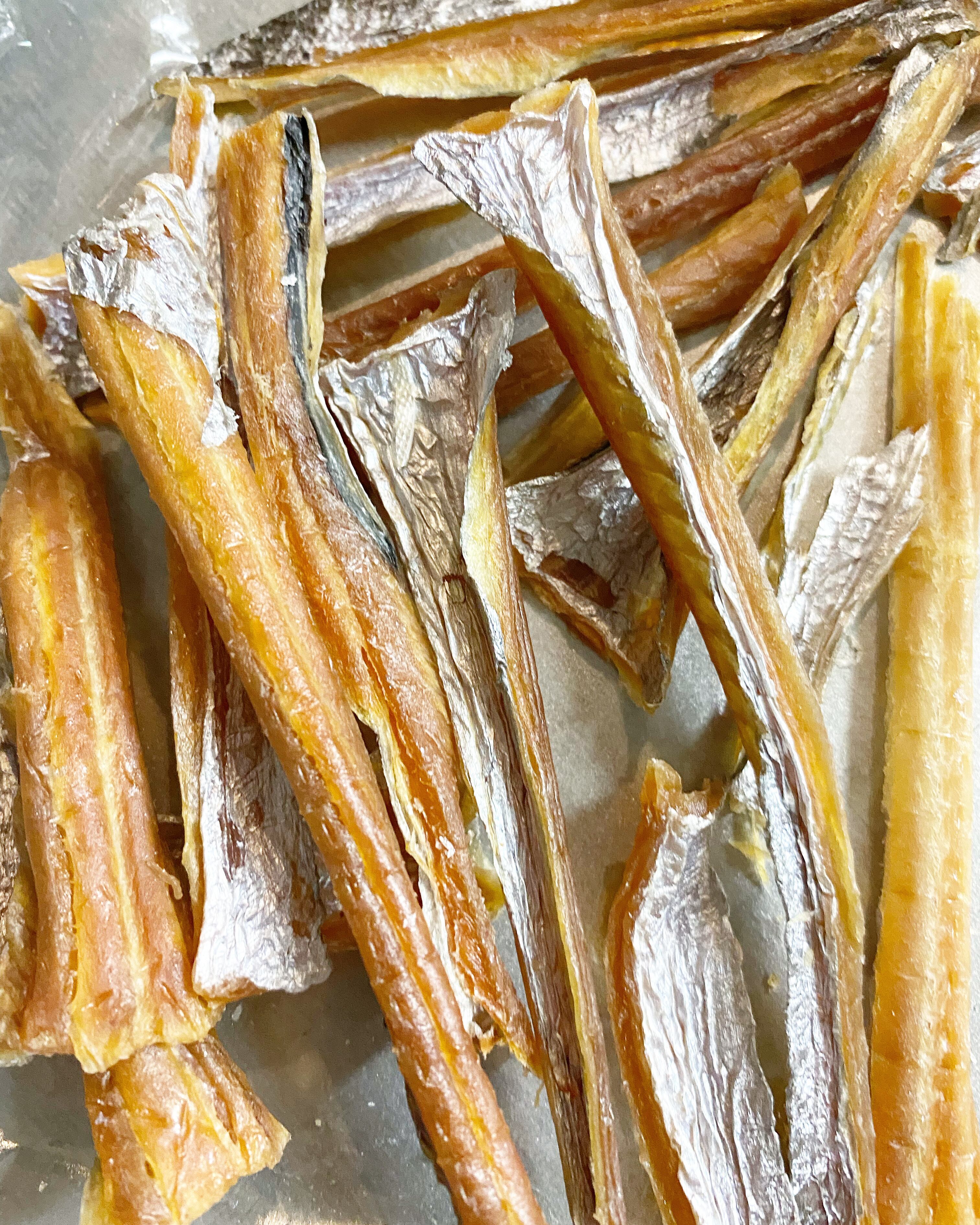 ※太刀魚を天然素材のまま手作業でカットしている為、サイズ、形状、色、硬さが均一ではございません。その時の素材の大きさによって一つ一つが太いもの(写真2枚目)一つ一つが細いもの(写真3枚目)とございますが、内容量はどちらも同じです。
